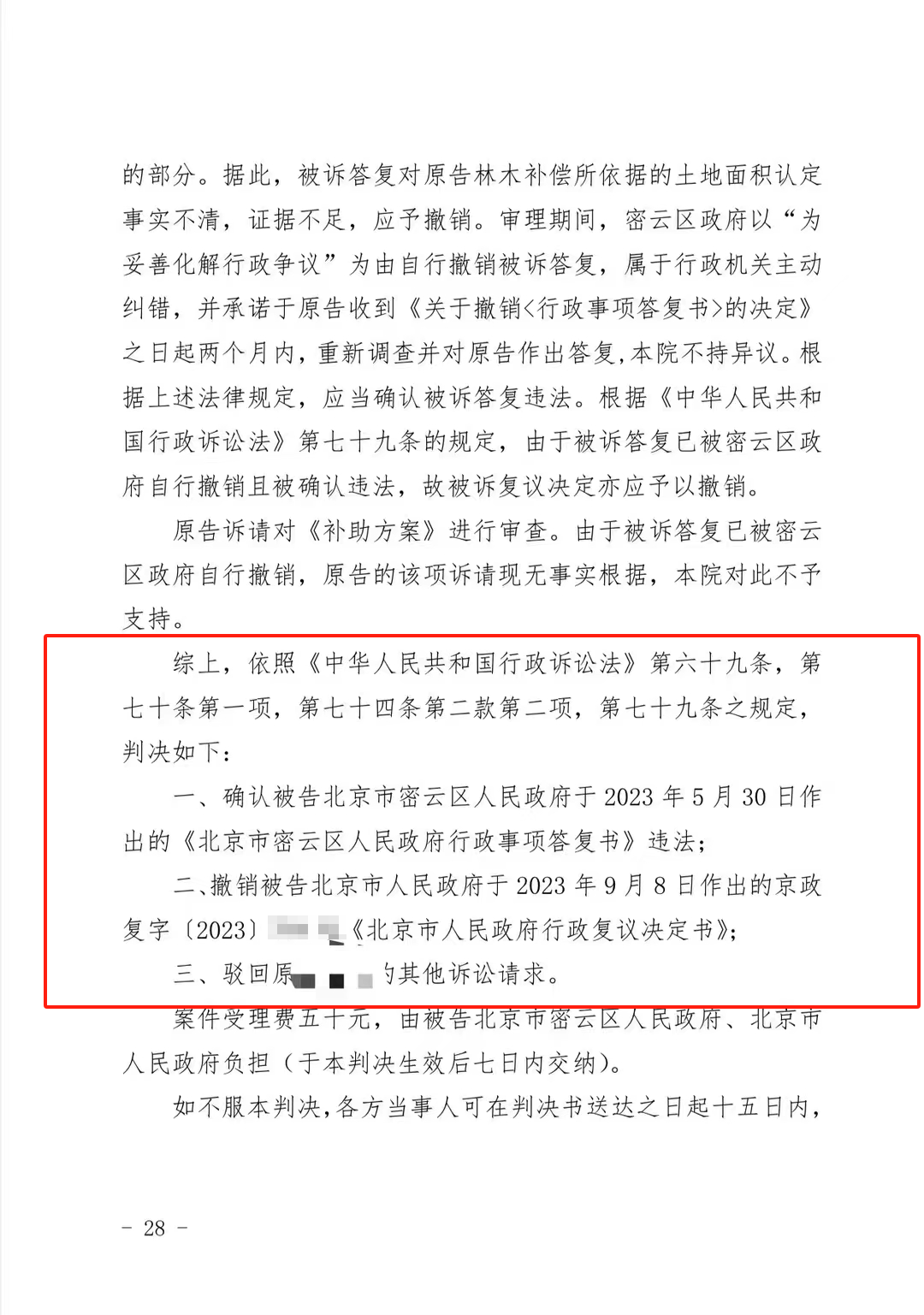 由本所纪召兵主任律师和王苏律师代理的张女士与北京市人民政府、北京市密云区人民政府履行安置补偿职责一案,经北京市第四中级人民法院开庭审理,作出(2024)京04行初4*4号《行政判决书》,确认被告北京市密云区人民政府于2023年5月30日作出的《北京市密云区人民政府行政事项答复书》违法,撤销被告北京市人民政府于2023年9月8日作出的京政复字(2023)7*4号《北京市人民政府行政复议决定书》,委托人的合法权益得以维护!